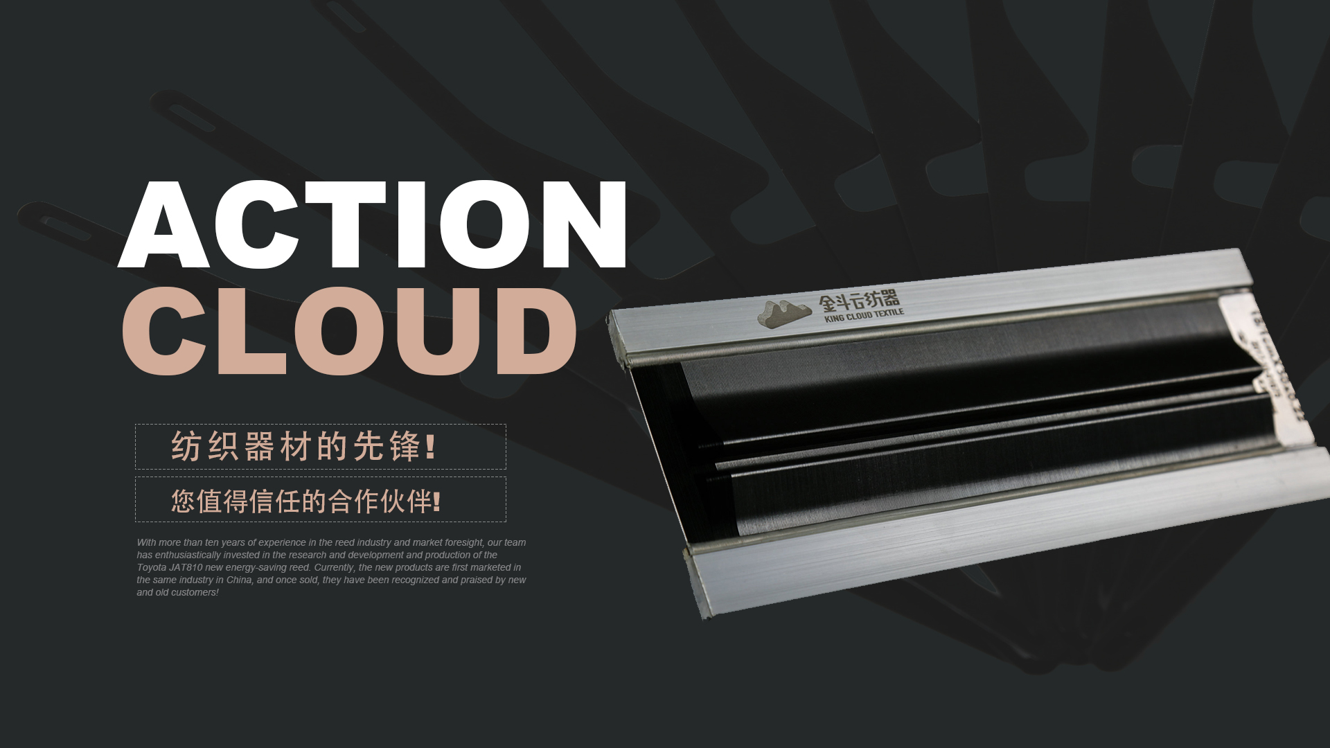 憑借十多年鋼筘行業(yè)經(jīng)驗(yàn)及對(duì)市場(chǎng)的前瞻性,我們團(tuán)隊(duì)滿懷熱情的投入到豐田JAT810新型節(jié)能鋼筘的研發(fā)和生產(chǎn)當(dāng)中,目前新產(chǎn)品在國(guó)內(nèi)同行業(yè)中先行上市銷售,一經(jīng)銷售就得到了新老客戶的認(rèn)可和好評(píng)!